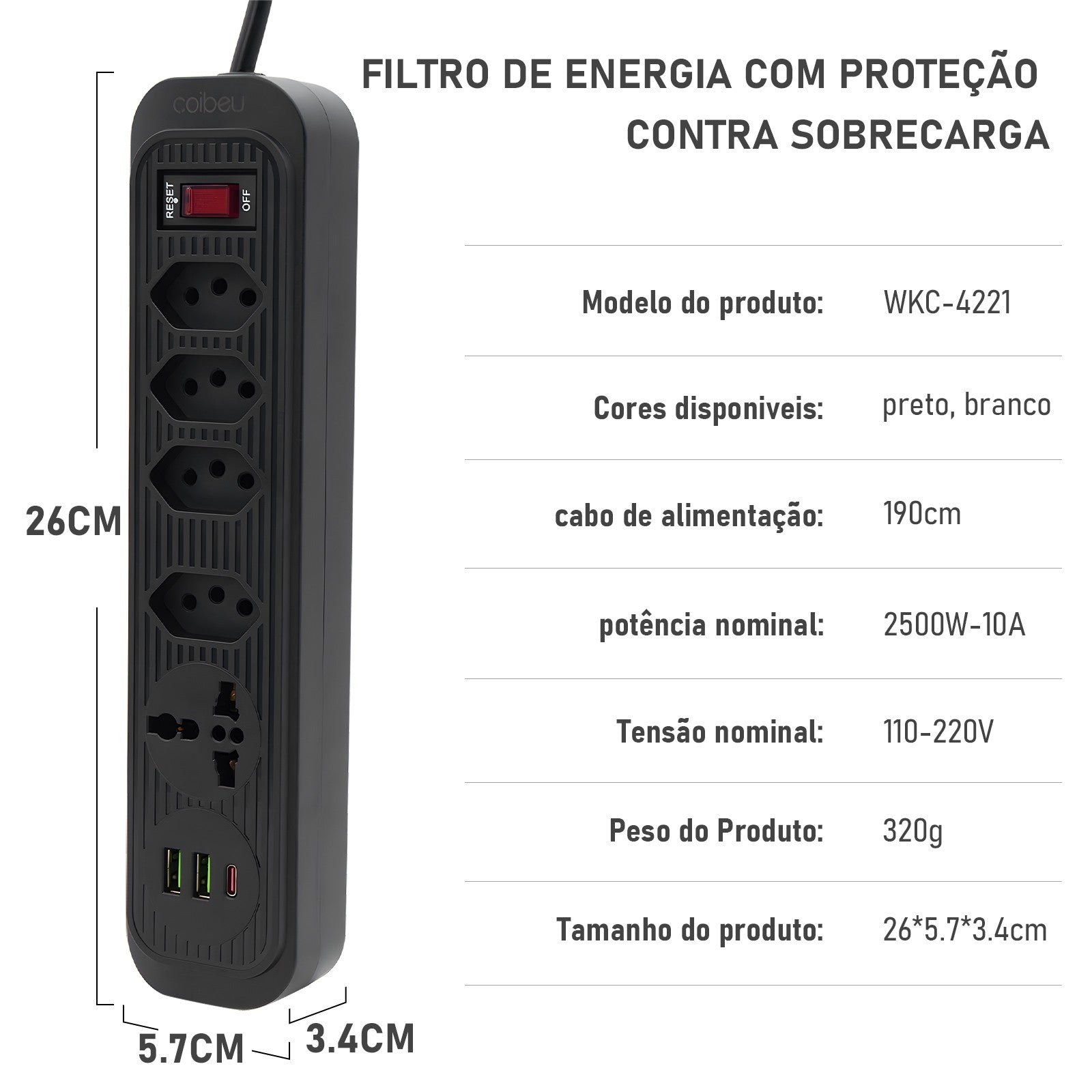 extensão tomada usb filtro de linha para pc do brasil, atenção de tomadas