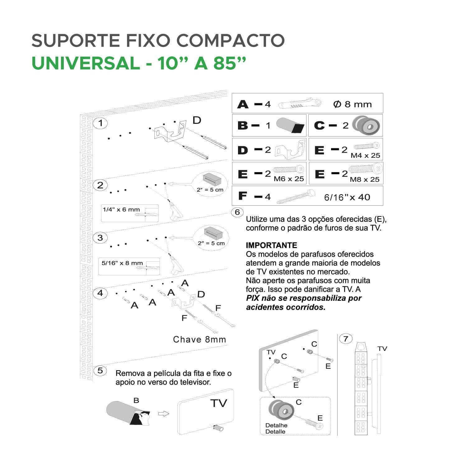 SUPORTE TV FIXO UNIVERSAL 10 A 85 - COMPACTO